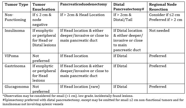 NOTE: Patients with hereditary syndromes can have a different treatment and surveillance protocol due to multi-focal disease or risk of other tumors. For loco-regionally advanced and/or metastatic PNETs, systemic therapy may be used but this approach is often determined following a multidisciplinary review. Options for systemic therapy includes Somatostatin analogues, Everolimus, Sunitinib, or even cytotoxic Therapies (Temezolomide or Streptozocin/doxorubicin with or without 5-FU). There is no panel consensus on a single specific treatment.