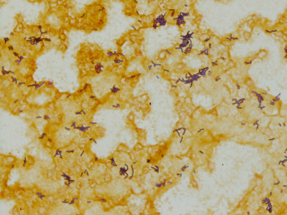 Bacteremia was suspected, and blood cultures obtained. The next day, his blood cultures were positive. Before an extensive workup involving additional cultures and MALDI-TOF, a gram stain was performed and is shown in Image 1. Also, a preparation from a young broth culture demonstrated motility. Both findings indicate Listeria monocytogenes.