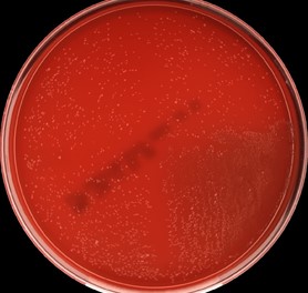 Image 3. Small gray colonies in blood agar from blood culture.