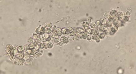 Image 3: Red blood cell cast seen in urine sediment.