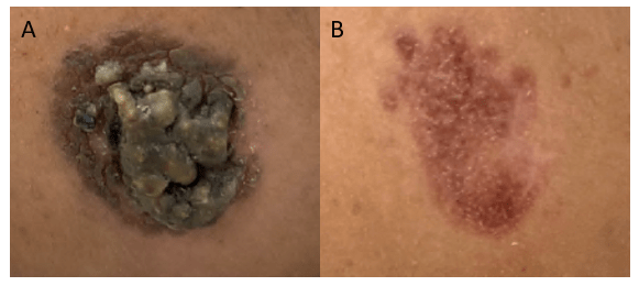 CL is the most common manifestation observed worldwide. L. major, L. tropica and L. aethiopica are common causes of CL in the East and L. braziliensis and L. mexicana are common causes of CL in the West.1 The clinical presentation of cutaneous leishmaniasis can vary depending on the Leishmania species involved, the immune status of the host, and the local immune response at the site of infection. The incubation period of cutaneous leishmaniasis can range from several days to months, with disease presenting as solitary or multifocal lesions. Affected areas may be ulcerated or nodular.4 This patient’s presentation was more nodular in appearance. Additionally, L. braziliensis can cause mucocutaneous leishmaniasis frequently months to years after spontaneously healed CL, which can erode the nasal septum, palate, or other mucosal structures.2