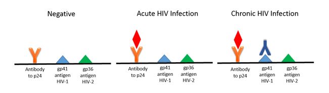 detect the p24 antigen and antibodies to HIV-1 and HIV-2 (see image below). By