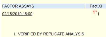 Specific factor assays are performed by mixing the patient’s plasma with substrate plasma that is severely deficient in the factor being measured. Factor deficient plasma would be expected to give a prolonged clotting time. When patient plasma is mixed with factor deficient plasma, the clotting time will shorten and the degree of correction is proportional to the factor level in the patient’s plasma. The clotting times for the patient sample are compared to a reference curve. The reference curve is made with dilutions of normal plasma (containing 100% factor) added to factor deficient substrate plasma. All tests are run with 3 dilutions at 25%, 50% and 100% and curves are checked for parallelism errors, which might indicate the presence of an inhibitor. For this patient, factor XI was initially resulted as 1%, which would indicate a factor deficiency.
