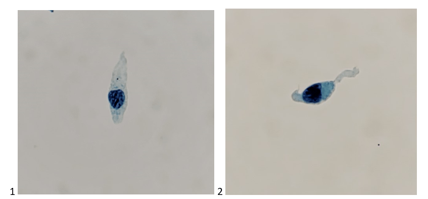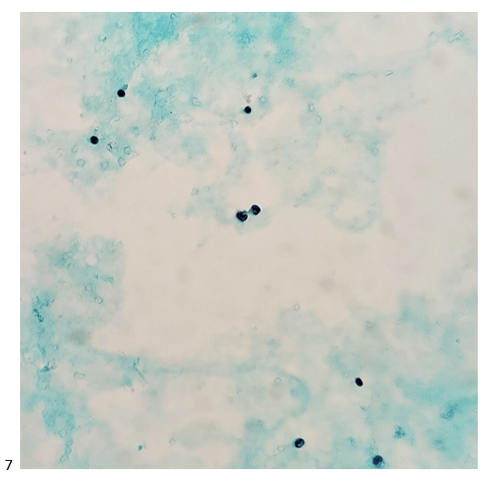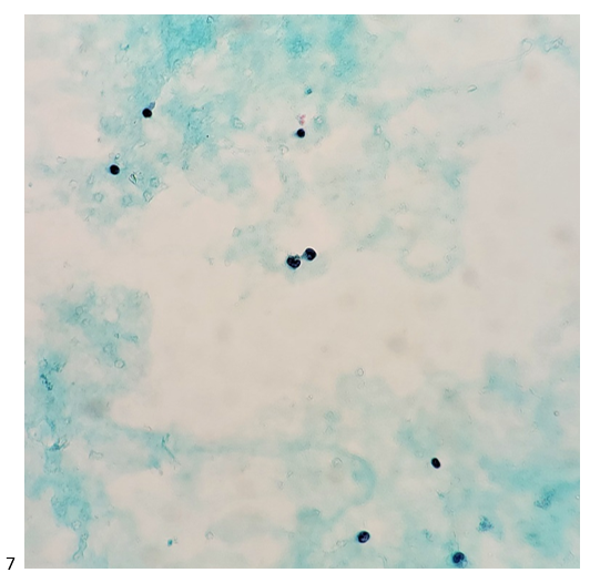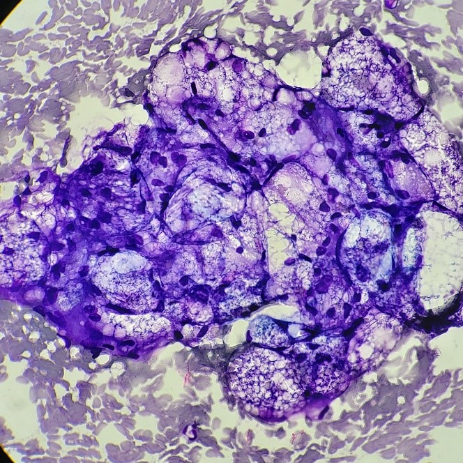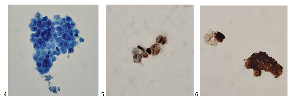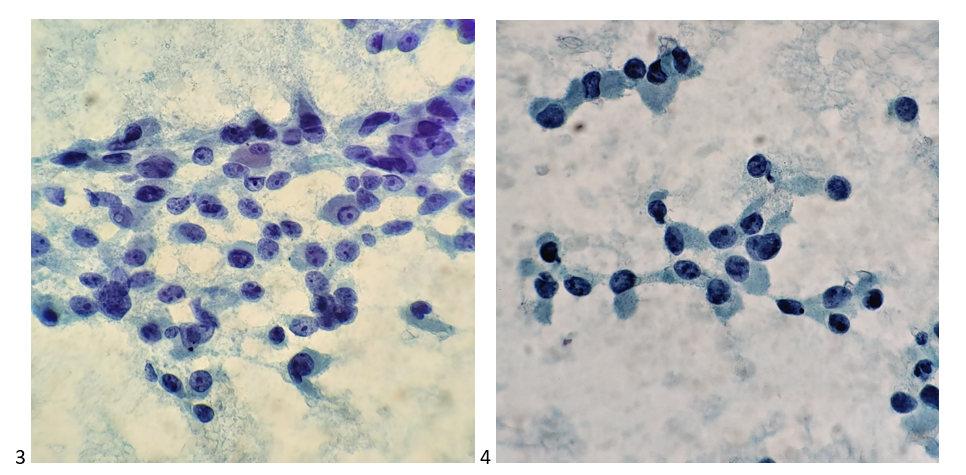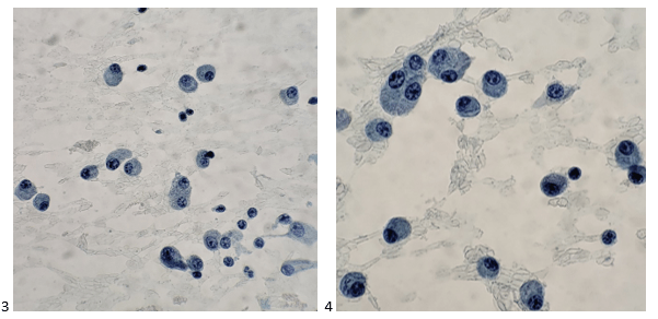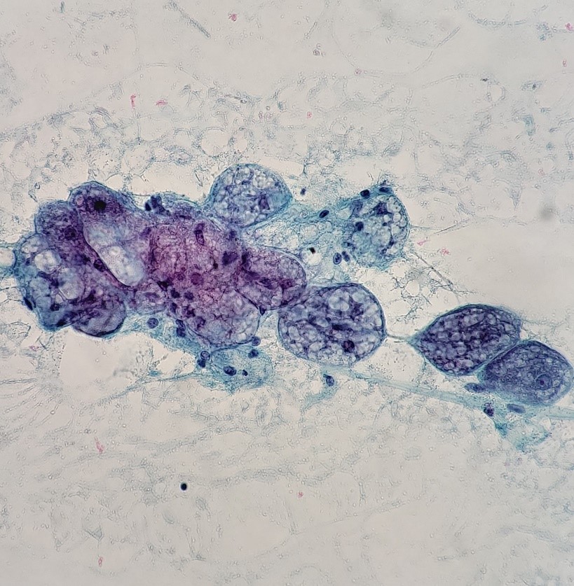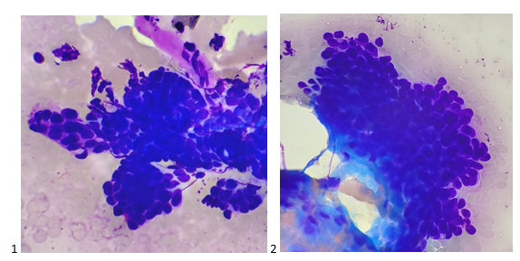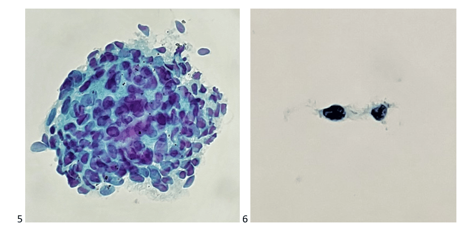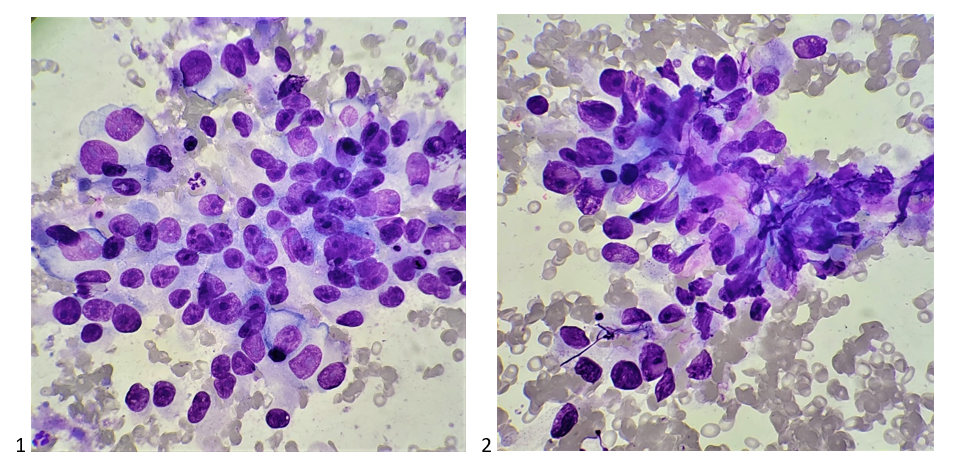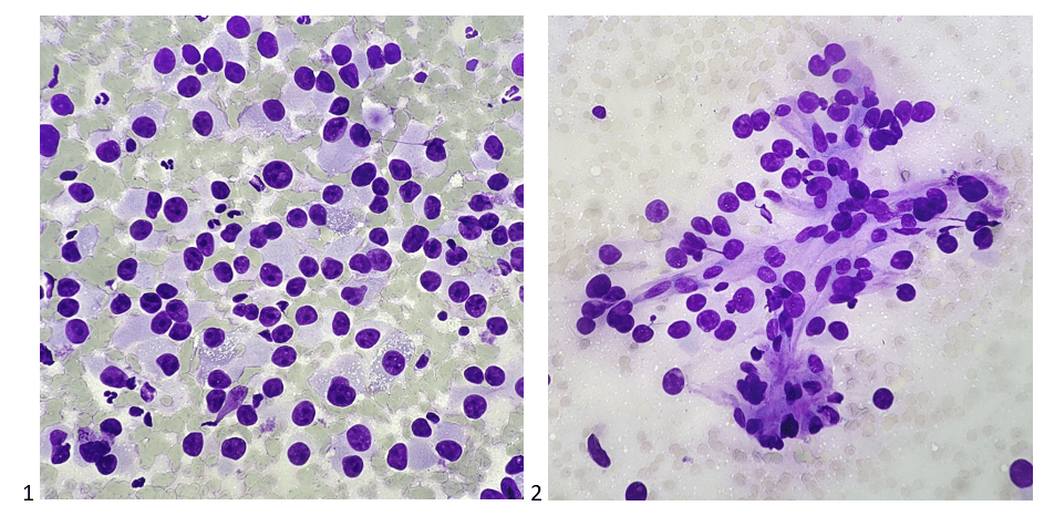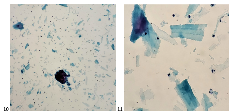 Let’s progress to the FNA. Here are the air-dried, Diff-Quik smears that changed everything.