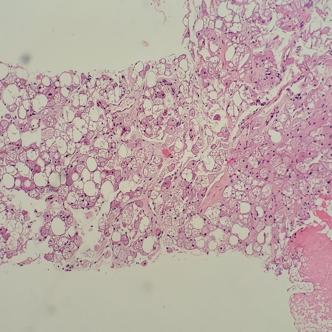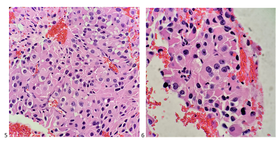 Melanoma is known as the great mimicker, especially in amelanotic form, and it should always be in the back of your mind as a differential diagnosis. Lack of melanin pigment and a large cherry red macronucleoli leads us to favor lung, prostate, or serous adenocarcinoma), renal cell carcinoma, hepatocellular carcinoma, Hodgkin’s lymphoma, or even an epithelioid sarcoma. This case highlights the need to remember that metastatic melanoma is always a possibility, even when you do not have a primary site or previous clinical history of the disease.