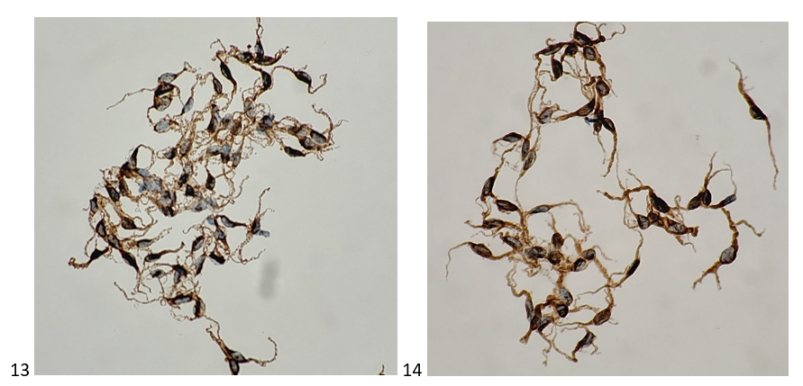 I’ve witnessed that radiologists are often hesitant to perform a core biopsy on a spleen due to its vascularity, so when I attend spleen FNAs, I rarely push. Even when the oncology team requests both a core biopsy and FNA for a hematology workup, I will acquire as many passes as possible from an FNA to work up cytomorphology and flow cytometry before risking a core-induced hemorrhagic complication. When I was called to attend an ultrasound-guided spleen biopsy, I went in knowing two things: the patient has both splenic and brain lesions, and I was going to make the most of what I was given. When I arrived in ultrasound, the radiologist informed me that the patient had polycythemia vera (PV), which would explain the splenomegaly, but not the brain lesions. The patient, a 65 year old male, received the diagnosis in 2009 and was managed with phlebotomies for six years until a rising platelet and white blood cell count required an intervention of hydroxyurea. Within 18 months, the patient developed a PE and dizziness and began therapeutic anticoagulation. At the same time, the patient’s “metastatic lesions” were identified on imaging. The first state of business is finding out if his PV had progressed into myelodysplastic syndrome (MDS) or acute myeloid leukemia (AML). There was something… off… about this case though. It didn’t feel like a heme case (not that I prefer non-heme cases… well, okay, I’m a cytotech, so I kind of do). The brain lesions concerned me, and I didn’t know what to infer.