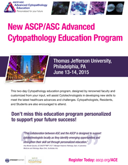ASCP and ASC have put together a program to enable cytotechnologists to grow their skills and advance their careers. During this workshop, attendees will learn how to engage as a part of the clinical team and broaden their skill set to include fluorescent in-situ hybridization and interpretation of applied molecular tests.