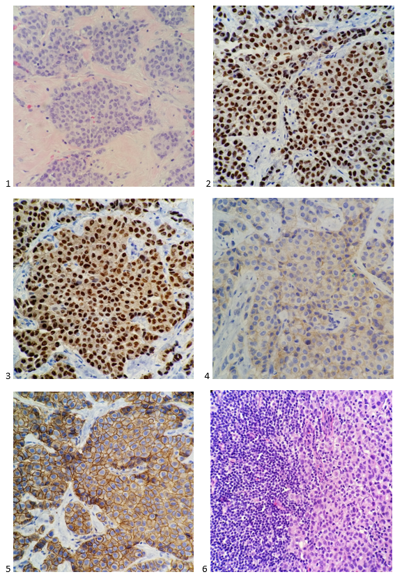 In the meantime, she had an MRI which demonstrated the two known lesions in the right breast, but also a large “enhancement” in the right breast. The MRI identified an area of enhancement in the left breast as well. And with those results, my relative felt comfortable withdrawing the lumpectomy plan from the table and played the card of double mastectomy with possible right-sided axillary lymph node dissection. A diagnosis of grade II invasive ductal carcinoma was made in the 1.5 cm right breast lesions, and the 6 cm right breast mass was diagnosed as invasive lobular carcinoma. The right axillary sentinel node demonstrated micrometastasis. On the left side, the pathology revealed a 3.5 cm grade II residual in-situ and invasive lobular carcinoma. She had a TRAM flap reconstruction at the time of her double mastectomy with radiation to the right breast after she recovered. She is tolerating and responding well to the daily dose of her aromatase inhibitor and now knows far too much about breast cancer and hormone receptor status thanks to my harping on the subject.