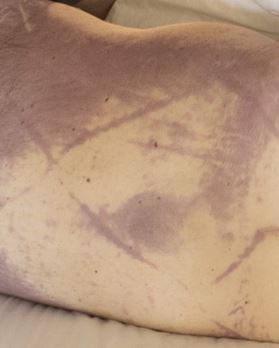 Image 1. The quilting pattern of this decedent’s mattress is visible in the livor mortis on his back.