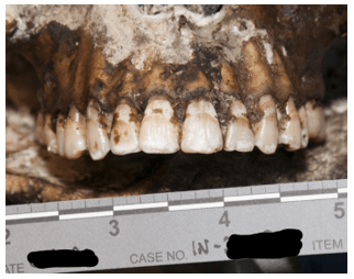 For skeletal remains with intact teeth, dental radiographs of the remains can be used for identification; however, for edentulous patients, a different strategy must be used.