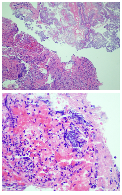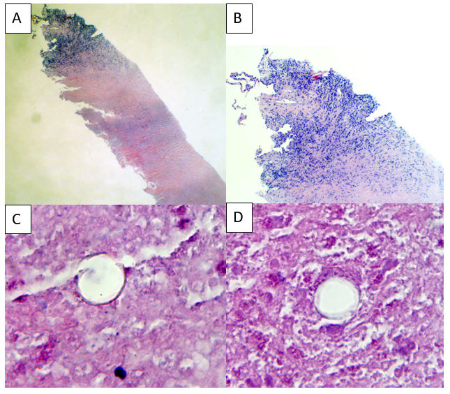 A 40 year old male with a history of cardiomyopathy requiring a left ventricular assist device (LVAD) was seen in clinic with a complaint of pain at the exit site of the LVAD driveline. History is notable for multiple admissions for driveline-associated complications. Despite extensive prior evaluation, cultures and imaging of the driveline exit site had been repeatedly negative with the exception of a methicillin-susceptible Staphylococcus aureus.This was treated with nafcillin, followed by doxycycline for oral suppression. The patient had stopped taking oral antibiotics two months prior to presentation. Imaging revealed a 1.4 cm region around the driveline exit site suggestive of either phlegmon, hematoma, or a developing abscess. Blood cultures and cultures of the driveline exit site were collected and sent to the clinical microbiology laboratory. Upon physical examination, the driveline exit site was tender, but no erythema was noted. The patient endorsed intermittent rust-colored drainage from the site. Blood cultures remained negative for the duration of the patient’s hospital course, and the patient was discharged on nafcillin with plans to transition to doxycycline.