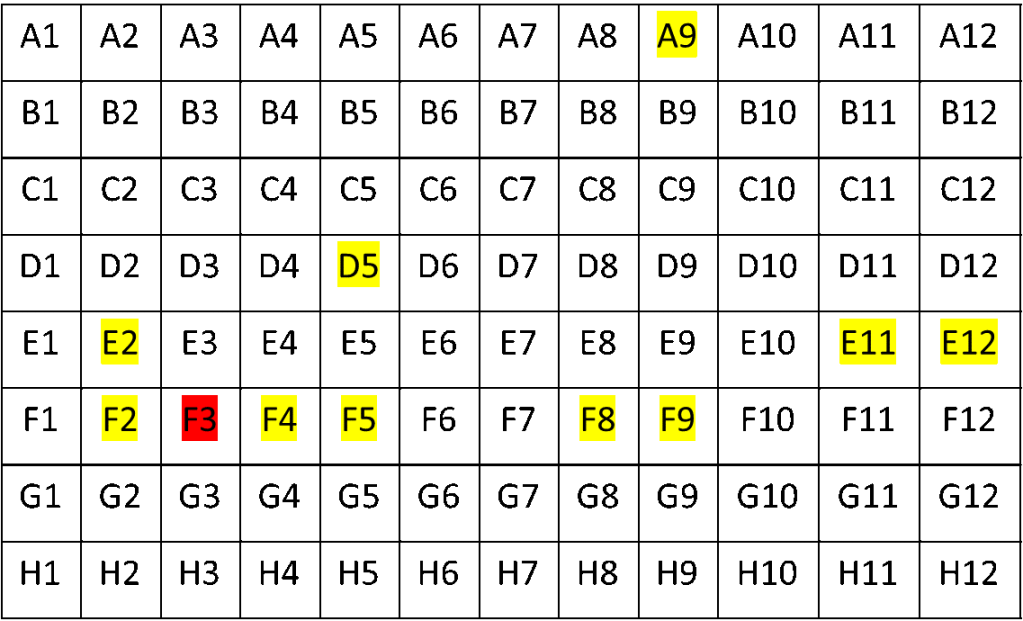 As there were no overlaping reads with the 3 b.p. and 6 b.p. deletion, we concluded that this finding arose from 2 distinct viral genomes. As to whether the person was infected with both Alpha and Delta, we looked to the rest of our 96 well plate. A characteristic muation in Alpha spike protein is N501Y (it confers increased binding to ACE2R and increased infectivity). This mutation was found in several specimens of the Delta lineage, but in this case there was a much lower frequency of this variant compared to total reads. Also, several of the cases had high CT values to start with. Many of the contaminated samples also were near a variant that mapped strongly to Alpha and had a lower Ct value (CT=25). Mapping the location of the specmens to the plate showed close proximity to the authentic Alpha variant.