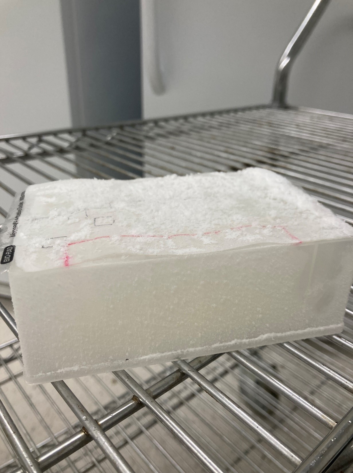 Image 2. 96 deep well plate of extracted RNA with a thin plastic cover that comes off as the plates is thawed.