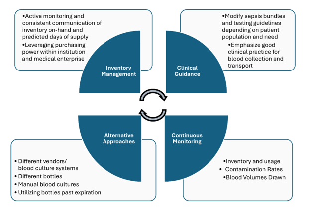 If the hospital is within a medical center, consider centralizing supplies and reallocating to those in dire need. If your institution is part of a larger system or corporation, consider leveraging system’s purchasing power vs. a single institution purchasing power to ensure availability of the blood culture bottles.