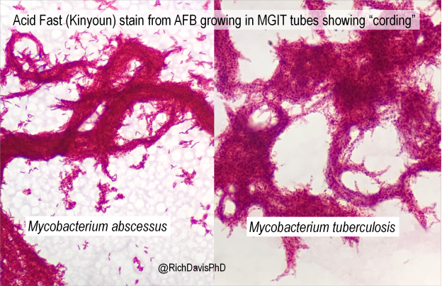 “Cording” is term used to describe twisting, serpentine appearance of Mycobacterium in liquid broth culture. And, at least in many places, it is taught to budding microbiologists and infectious disease clinicians as a hallmark characteristic of Mycobacterium tuberculosis (Mtb).