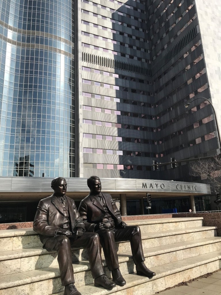 As with any hospital, academic center, clinic, etc., you’re always going to have a driving philosophy that anchors the values of that particular institution. Some of my experiences in larger academic centers tout their strides at the forefront of medicine and translational research, others advertise that they treat the whole person body and spirit. Community hospitals sometimes lean into their integral part of, well, their communities as a center for trust and health. Sometimes institutions have specific populations to cater to or work intensely with industry and boast strong contributions to medical science. At the Mayo Clinic you’d be hard pressed to miss the message (in various forms) that “The Patients Come First”—in fact that line from many years ago comes from Dr. William Mayo delivering a commencement speech at a Rush Medical College graduation. (I was so happy to see so many Chicago-Mayo Clinic connections!)